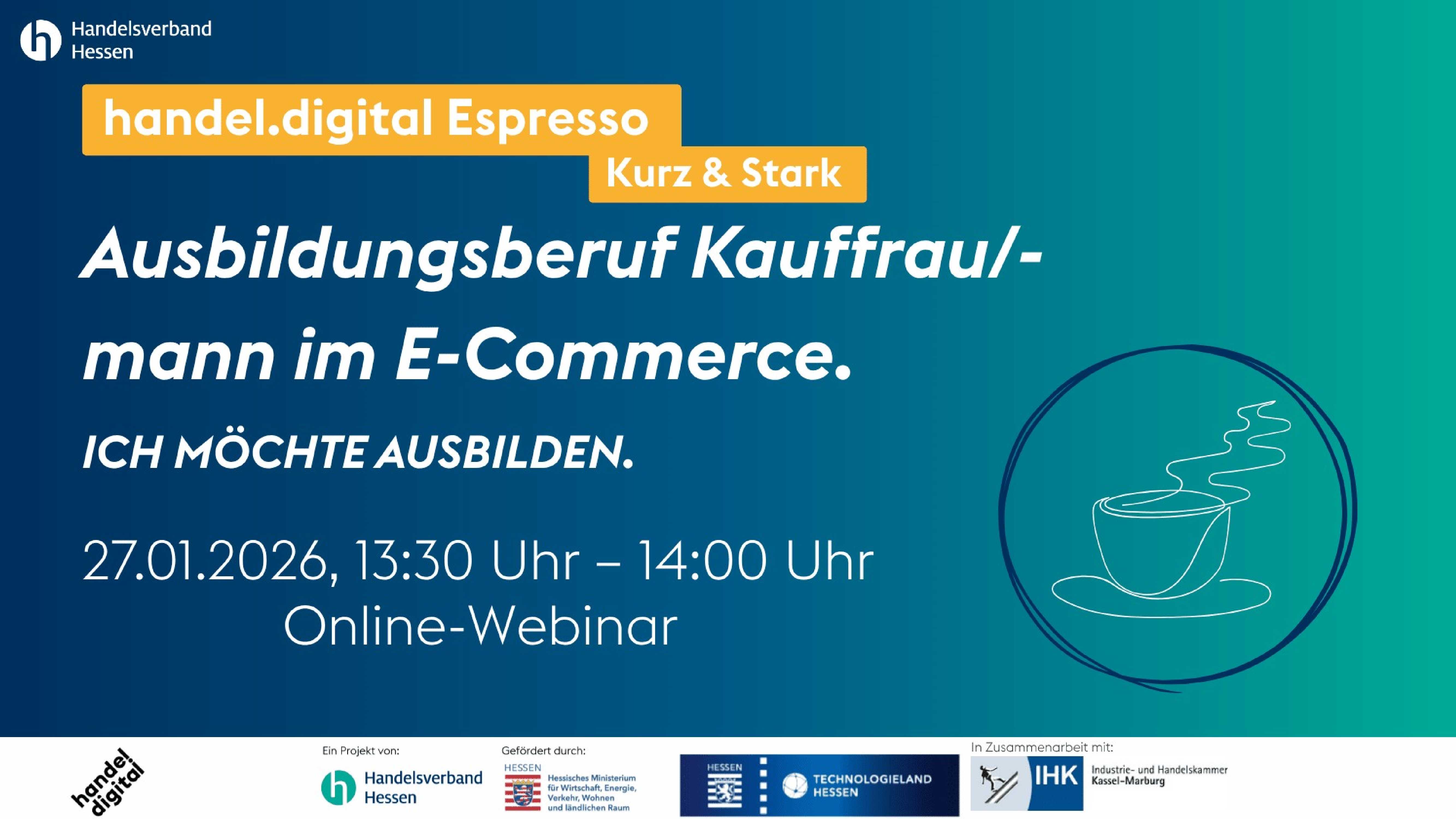 handel.digital Espresso: Ausbildungsberuf Kauffrau/- mann im E-Commerce. Ich möchte ausbilden.